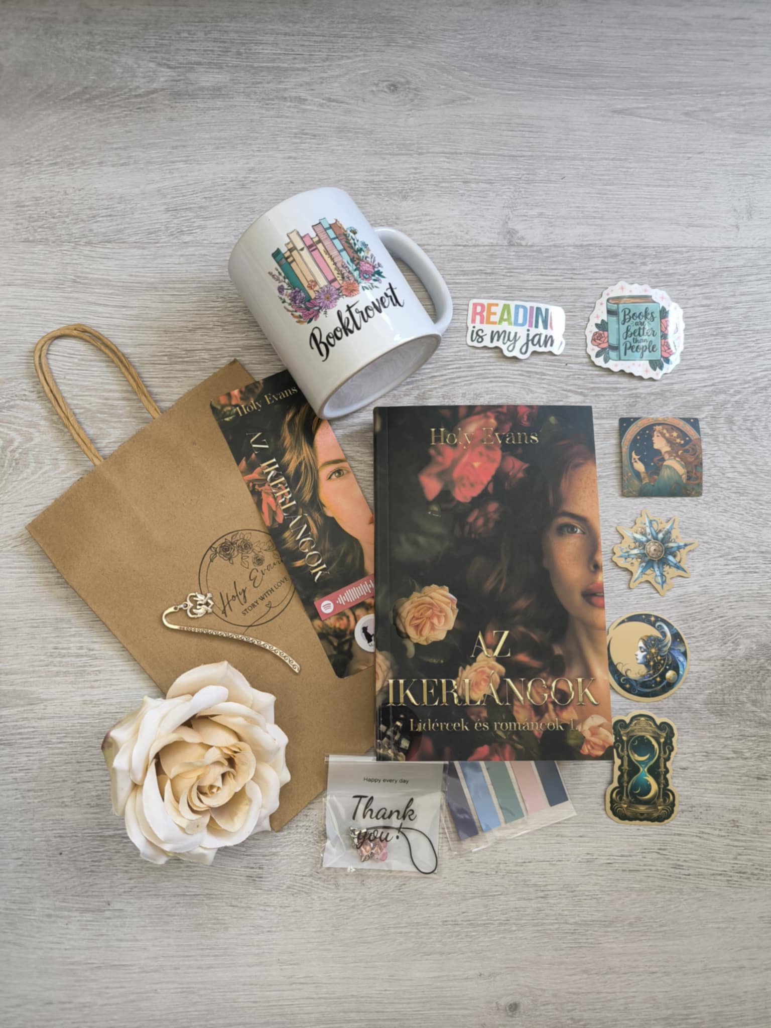 Limitált pldányszámú Book box elérhető Holy Evans – Az ikerlángok – Lidércek és románcok 1. című könyvéhez.
